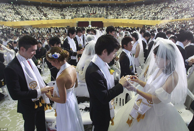 दक्षिण कोरियाको युनिफिकेसन चर्चले आयोजना गरेको यो सार्वजनिक बिबाह समारोहको झलक हो । जहाँ बिश्वभर यही चर्चसँग जोडिएका अनुयायीहरु अन्तरजातीय र अन्तरसांस्कृतिक बिबाहका लागि तयार छन् ।