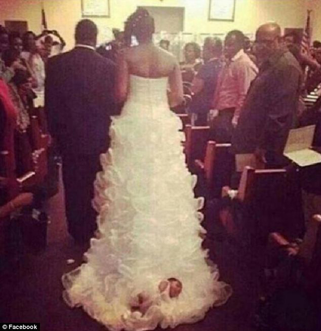 वेडिङ गाउनको पुछारमा शोनाले एक महिने बच्चालाई बाँधिन् । उनले एक महिने बच्चालाई घिसारेर हिँडिन् र पुरा पार्टीभर त्यसरी नै बसिन् ।